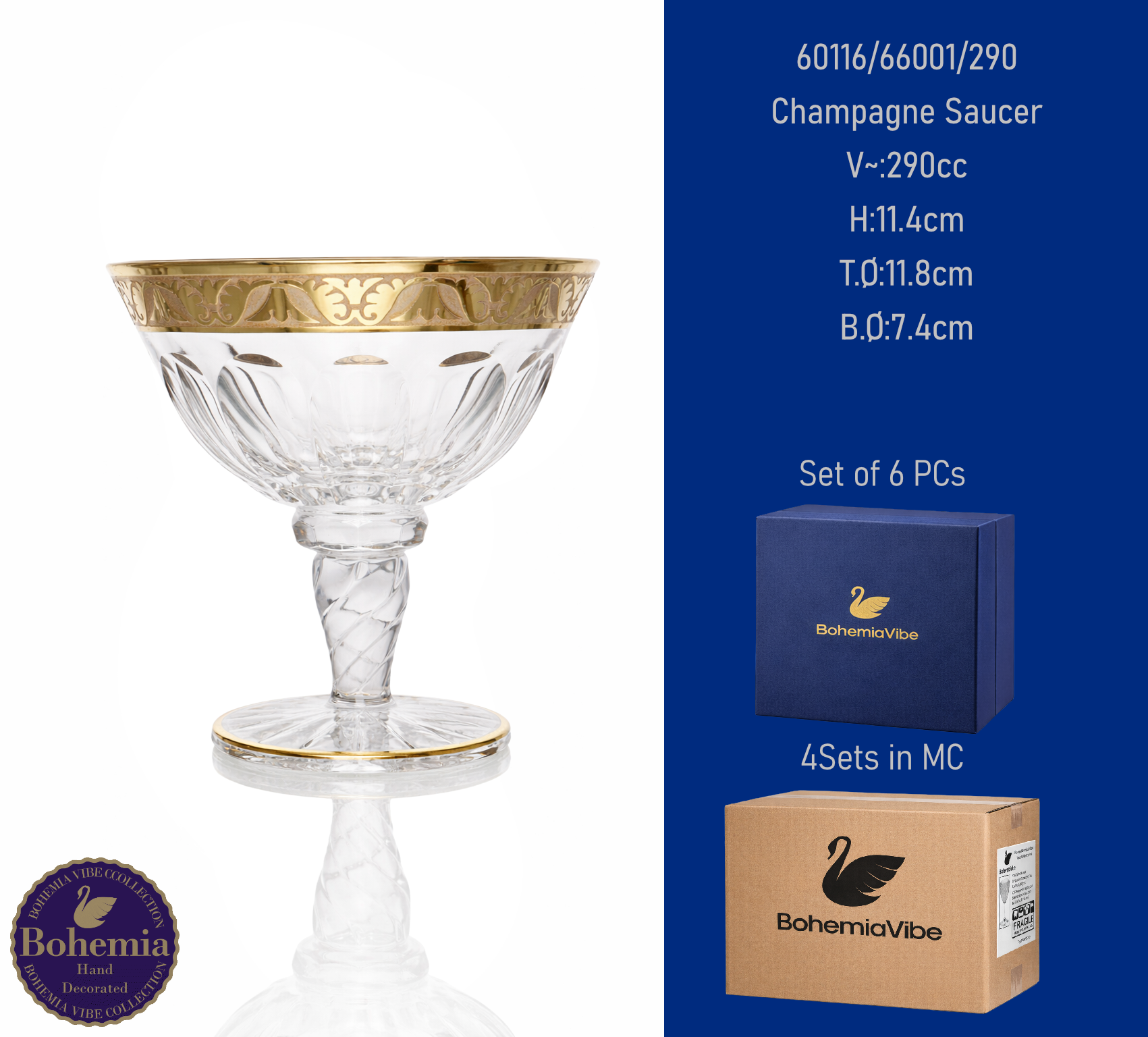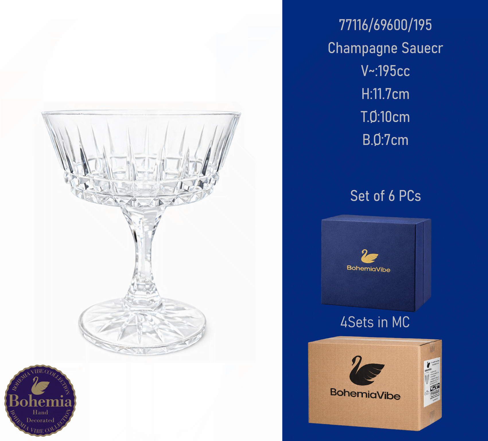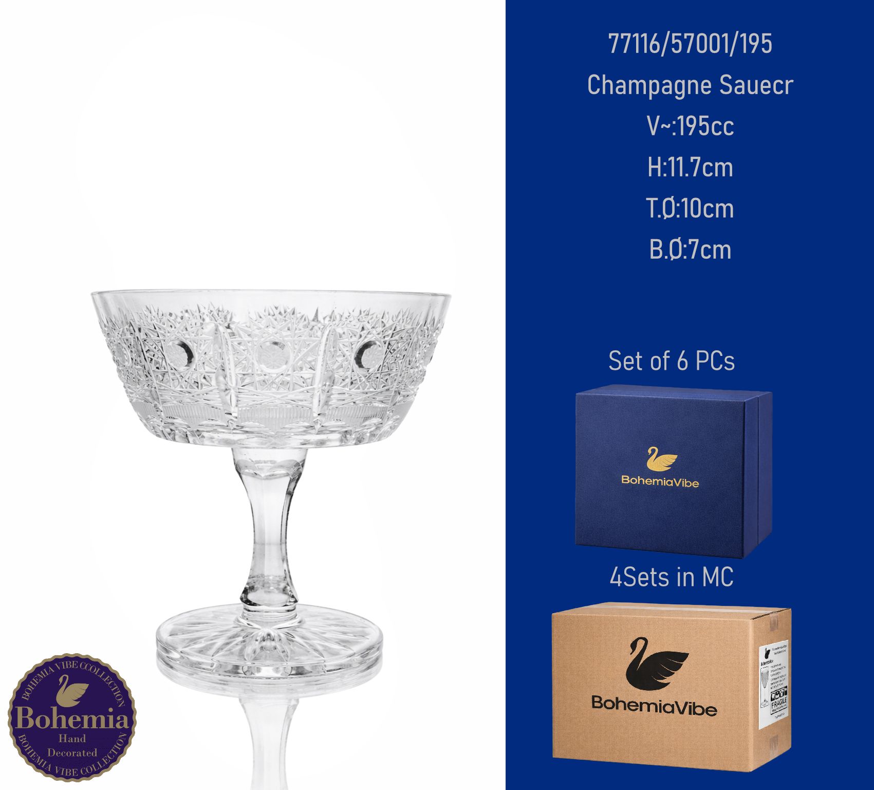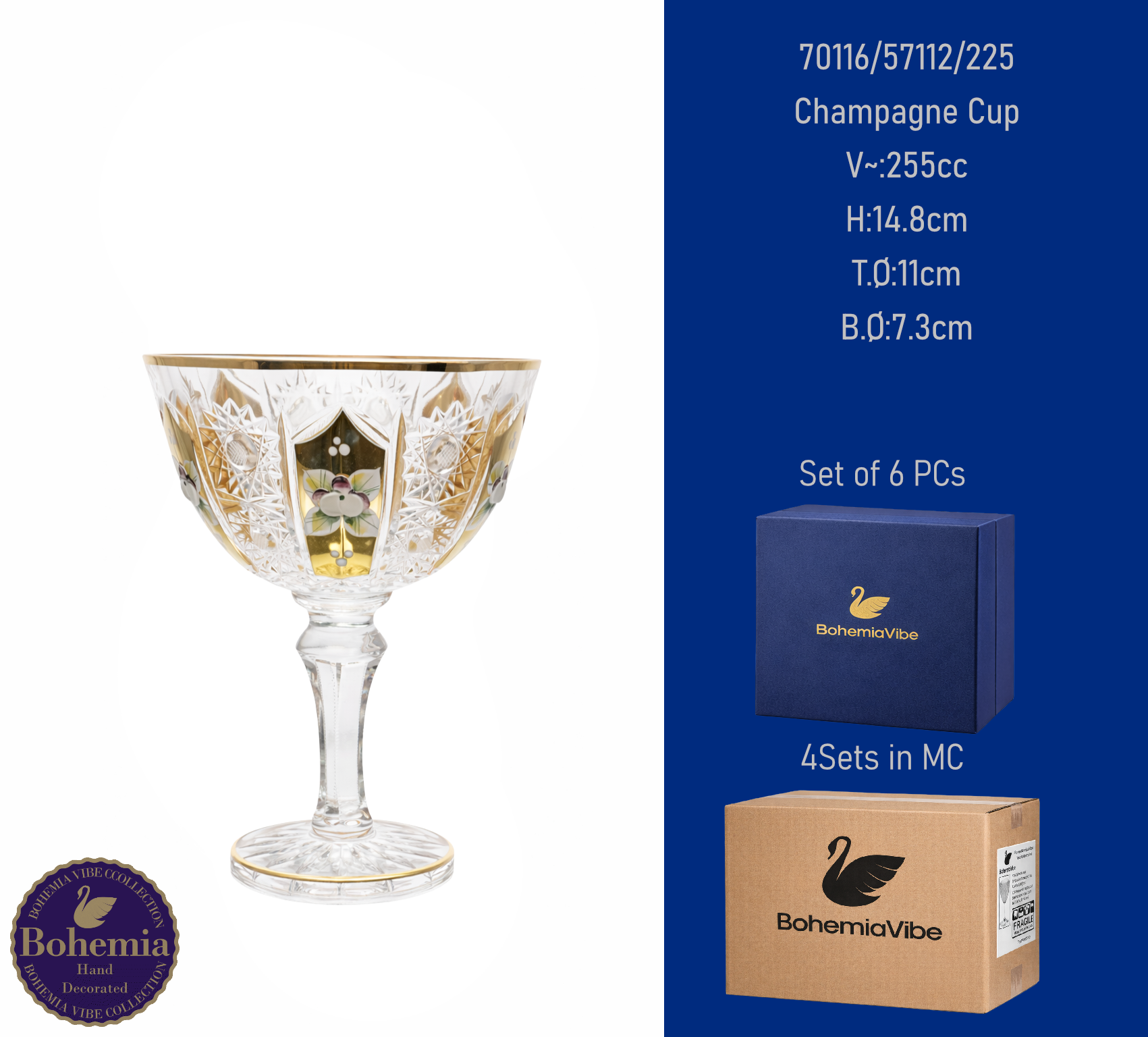 Champagne Saucer V~:290cc H:11.4cm T.Ø:11.8cm B.Ø:7.4cm Cutting with gold sandblasting