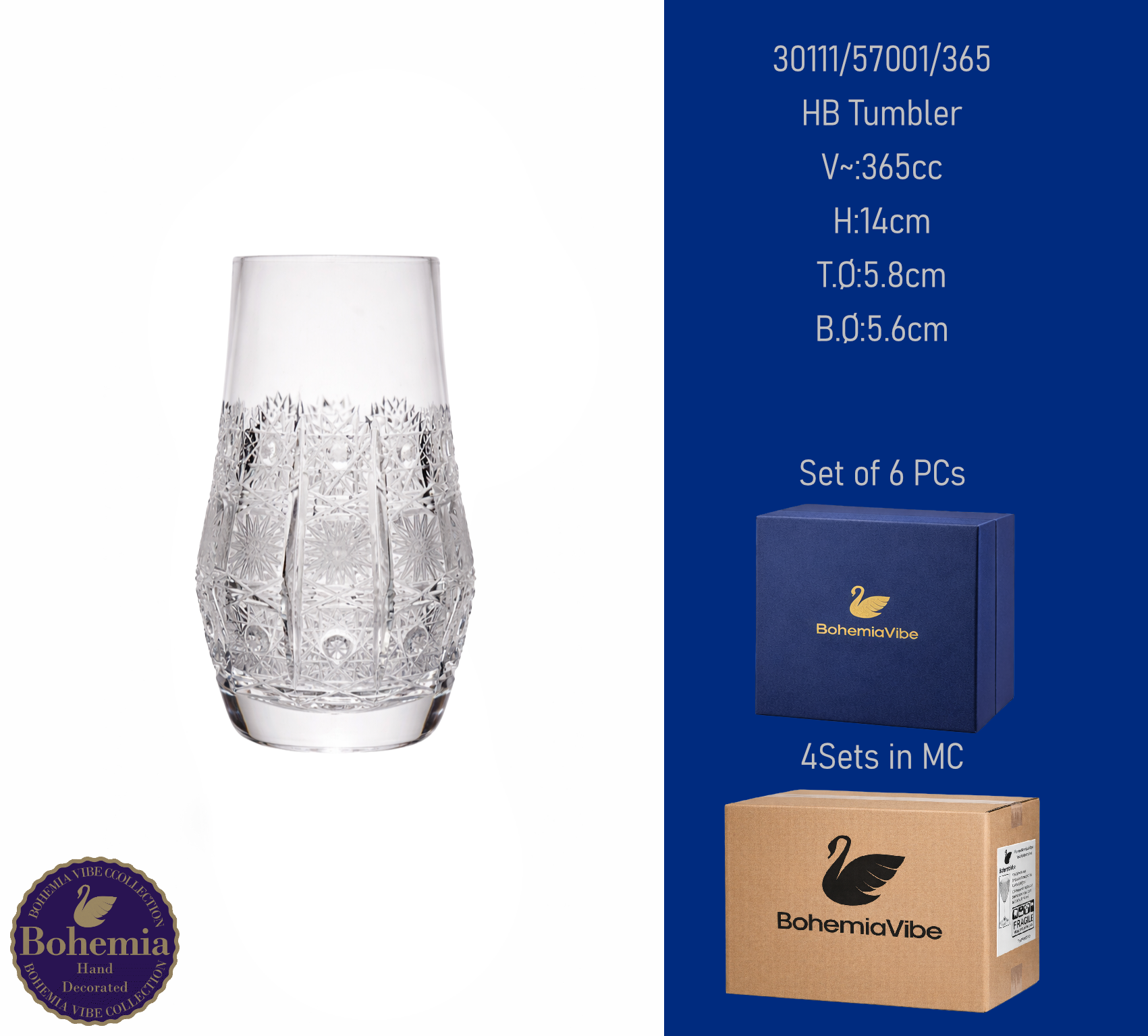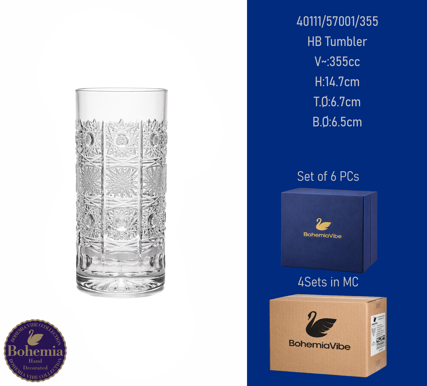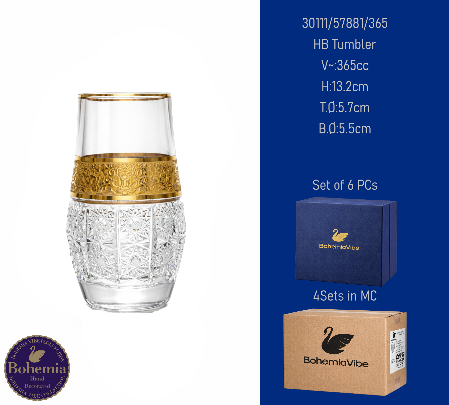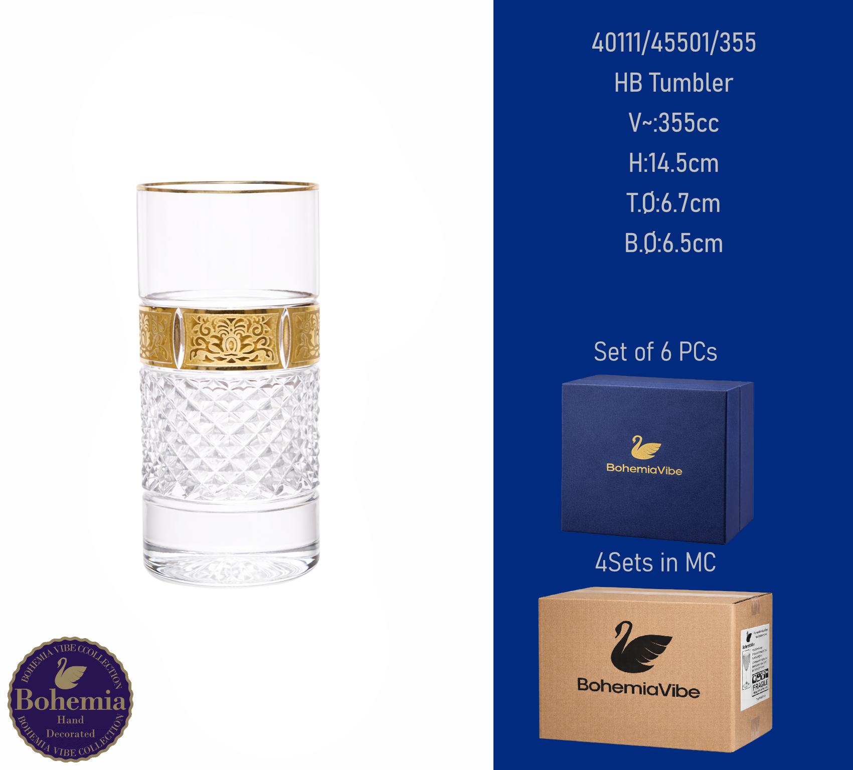 HB Tumbler V~:355cc H:14.5cm T.Ø:6.7cm B.Ø:6.5cm Cutting with gold sandblasting
