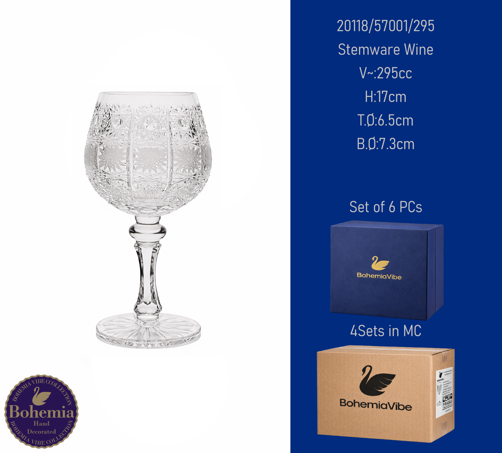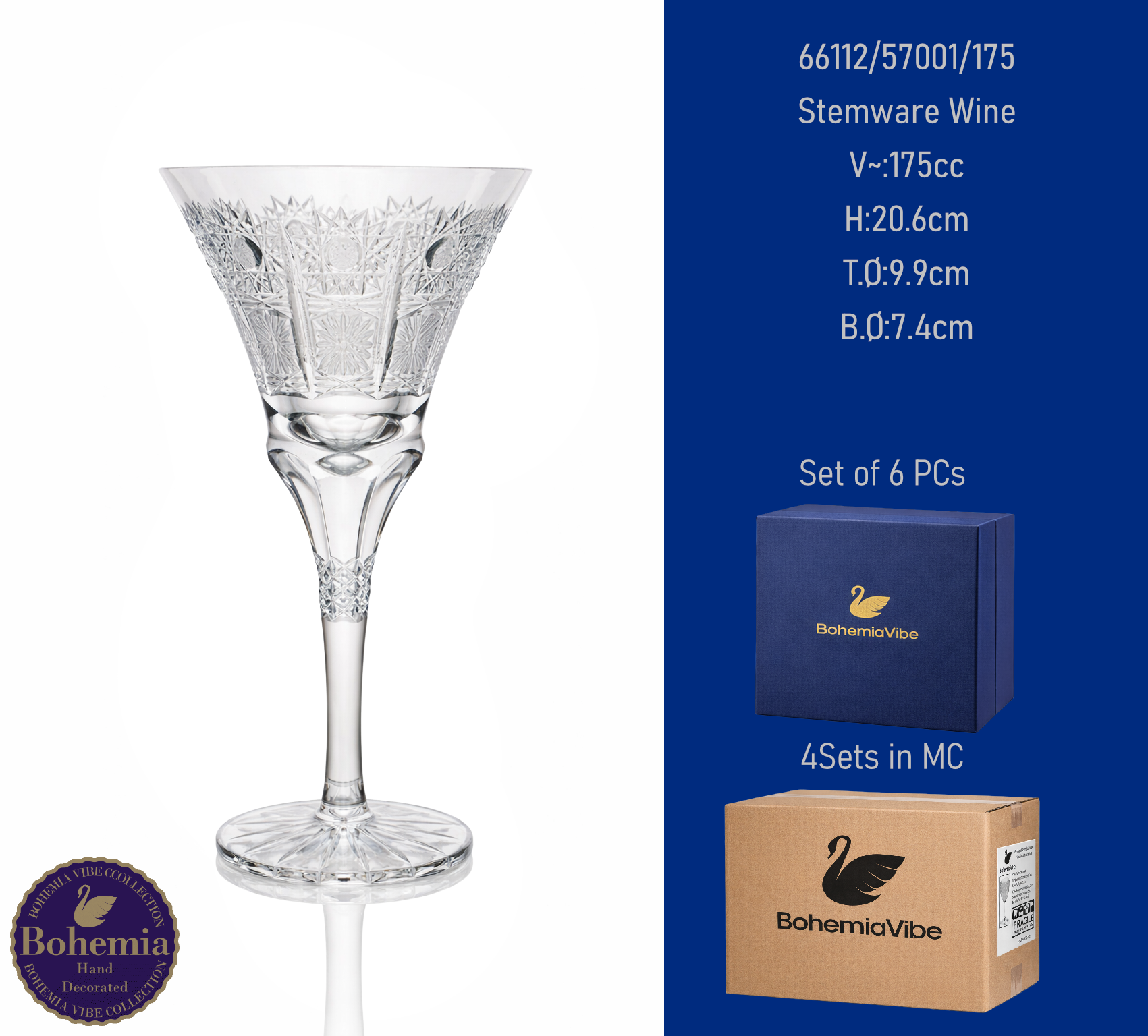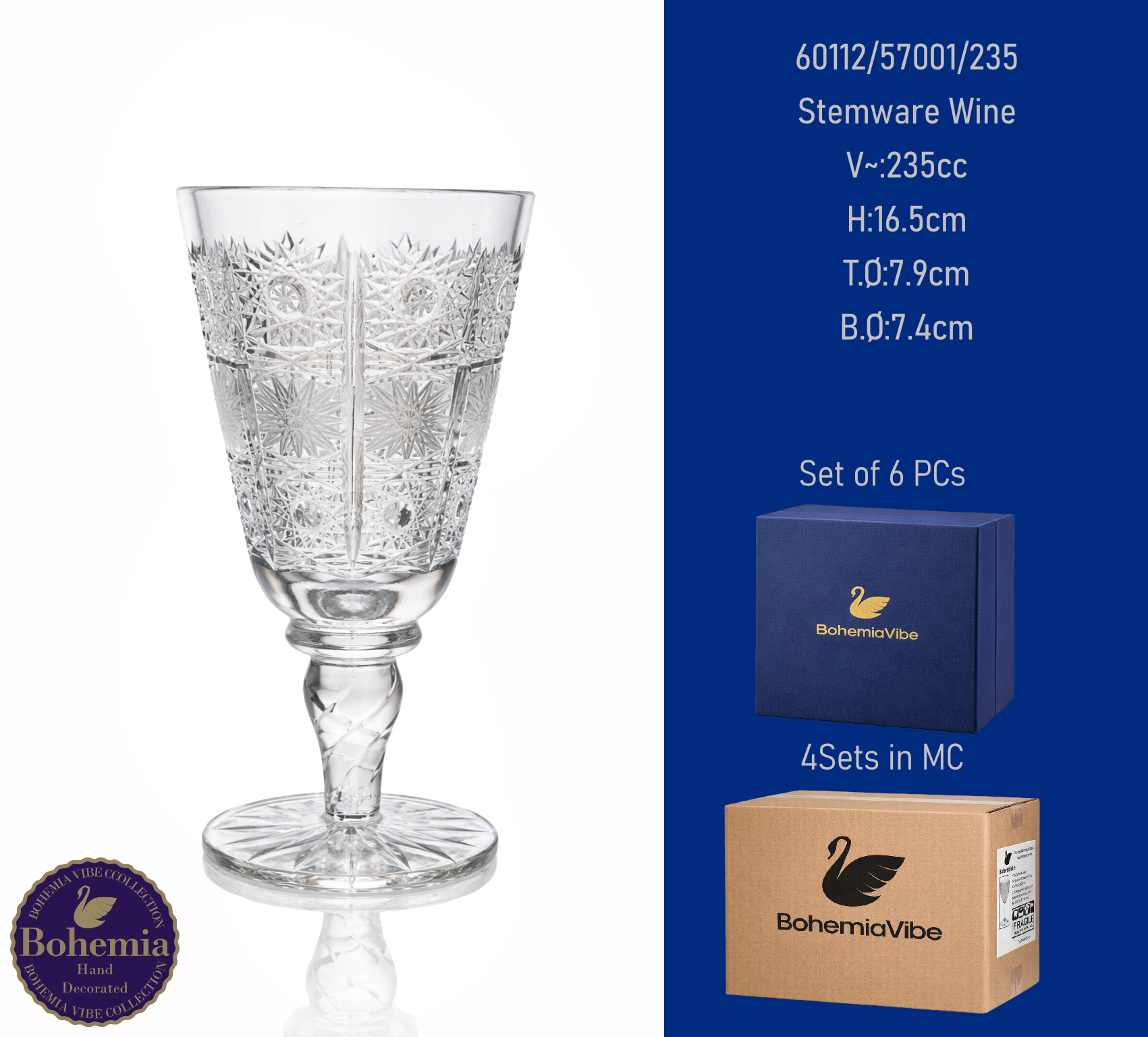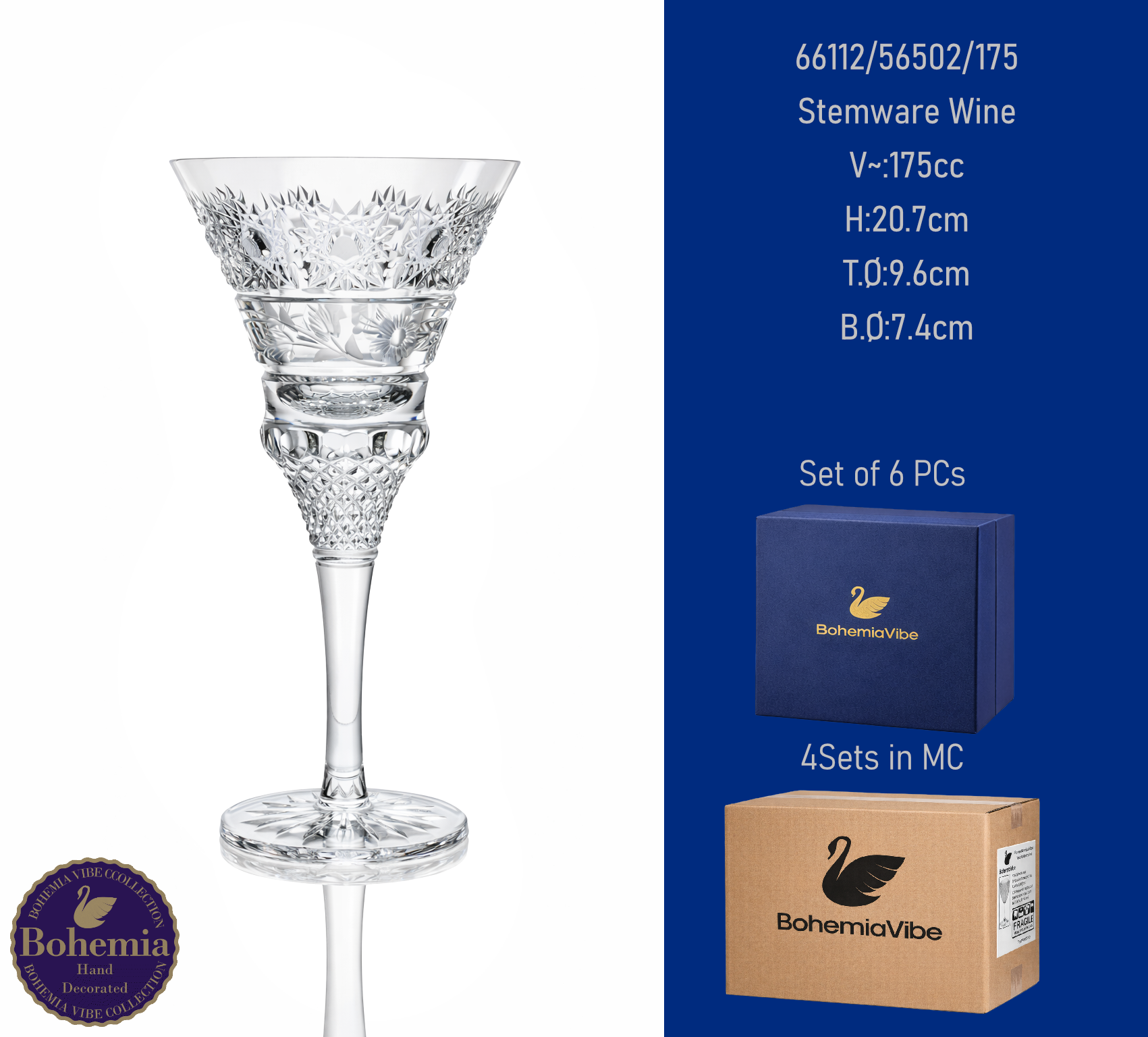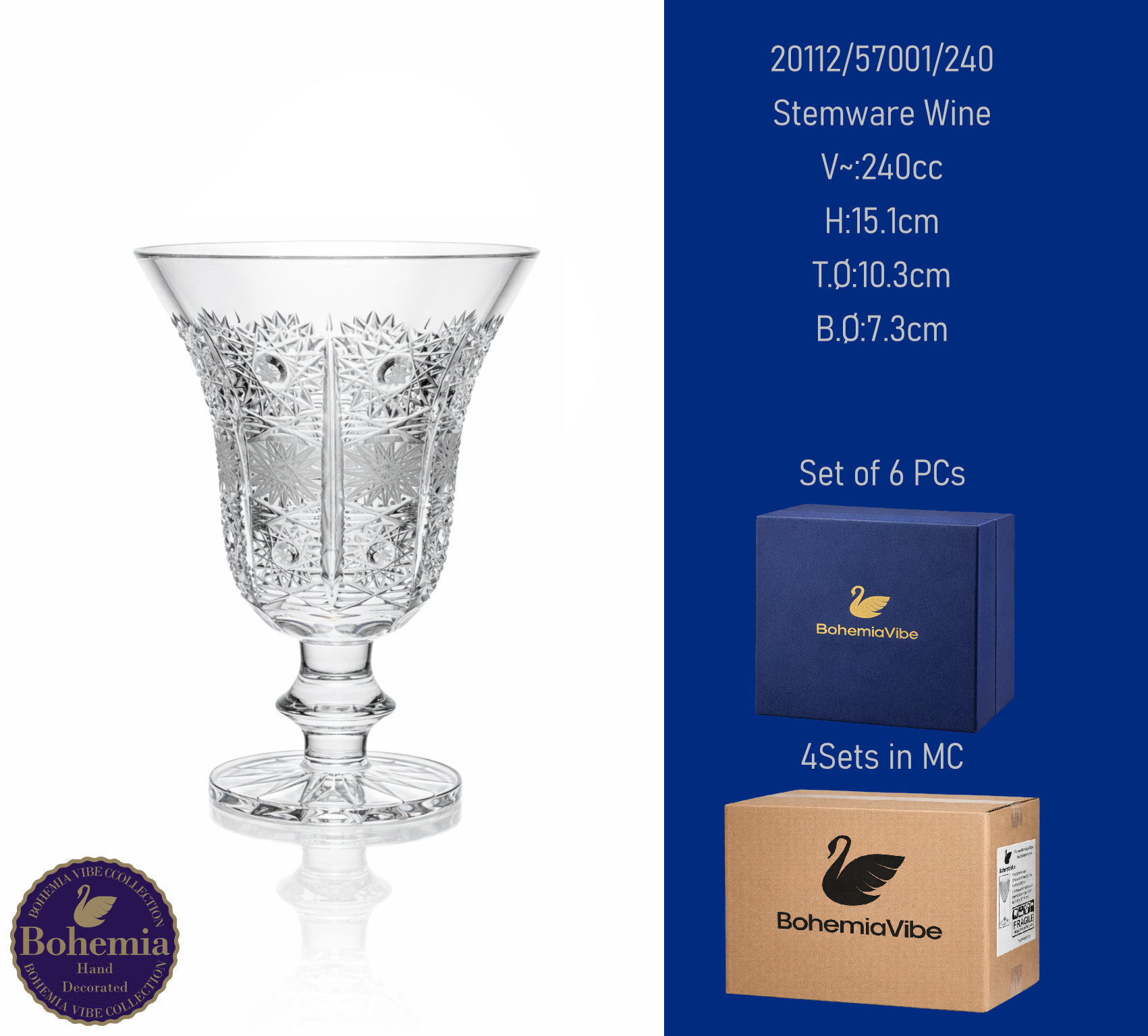 Stemware Wine V~:235cc H:17.2cm T.Ø:7.8cm B.Ø:7.5cm Cutting with gold sandblasting