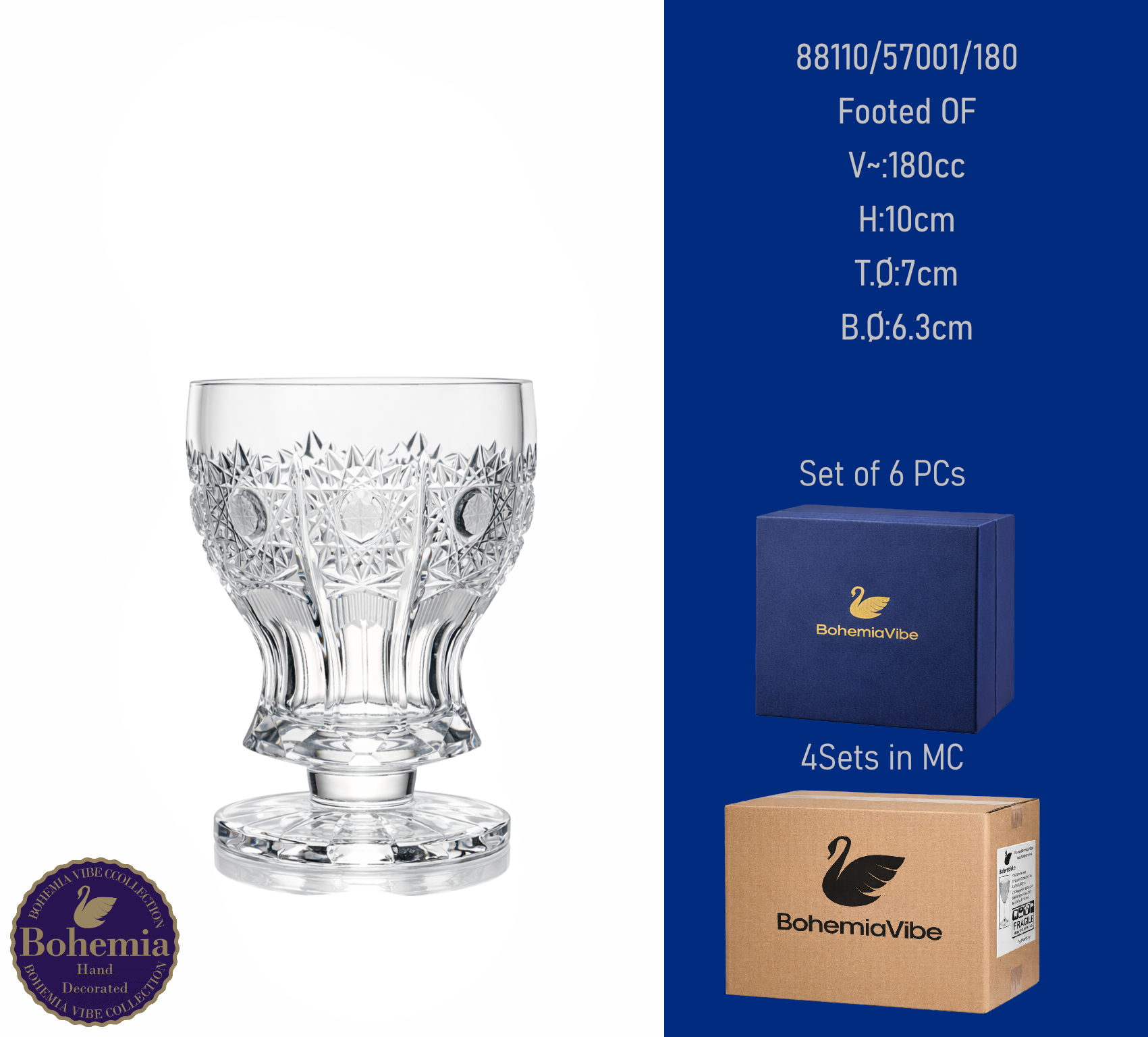 Footed OF V~:180cc H:10cm T.Ø:7cm B.Ø:6.3cm PK500 cut