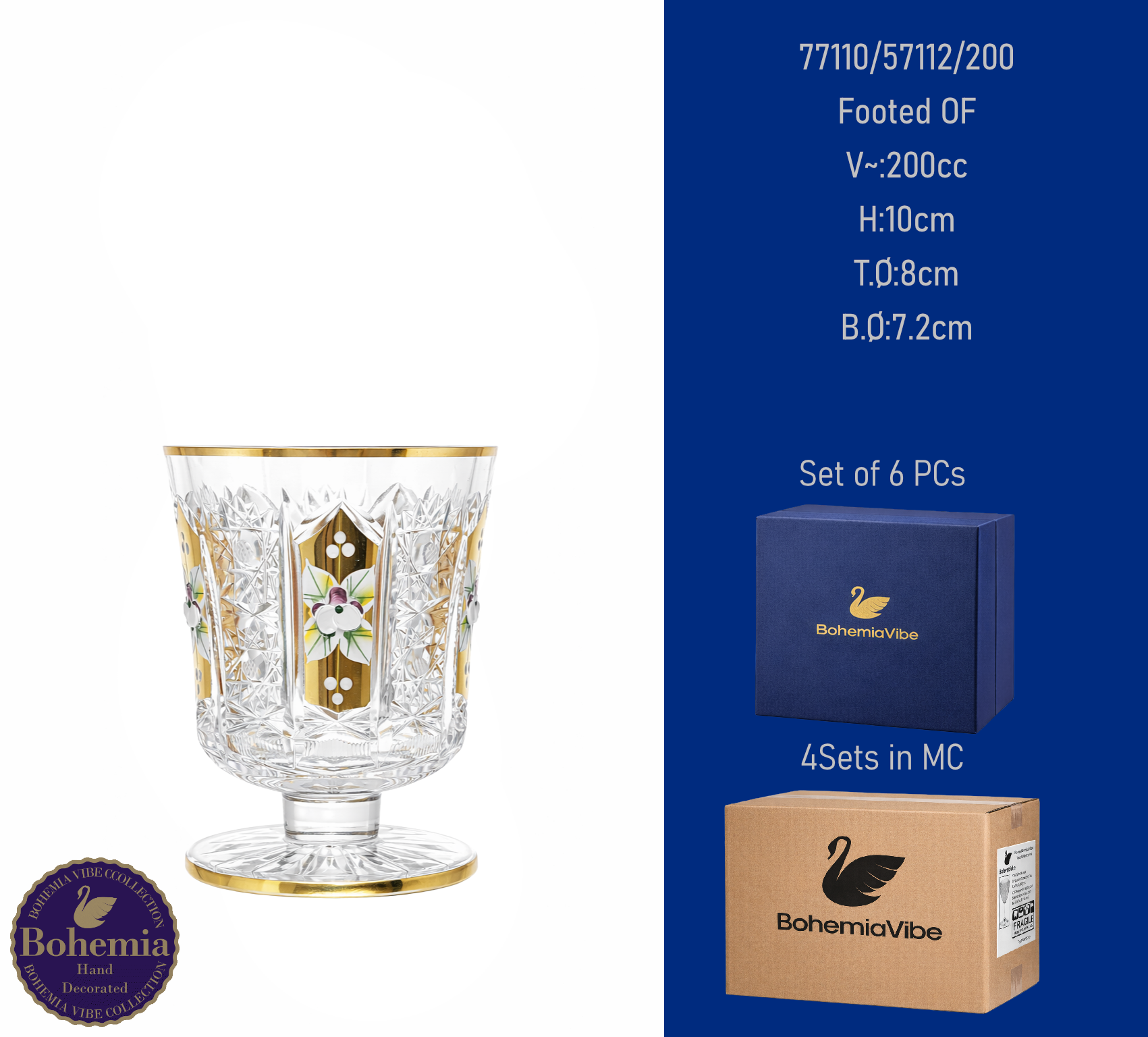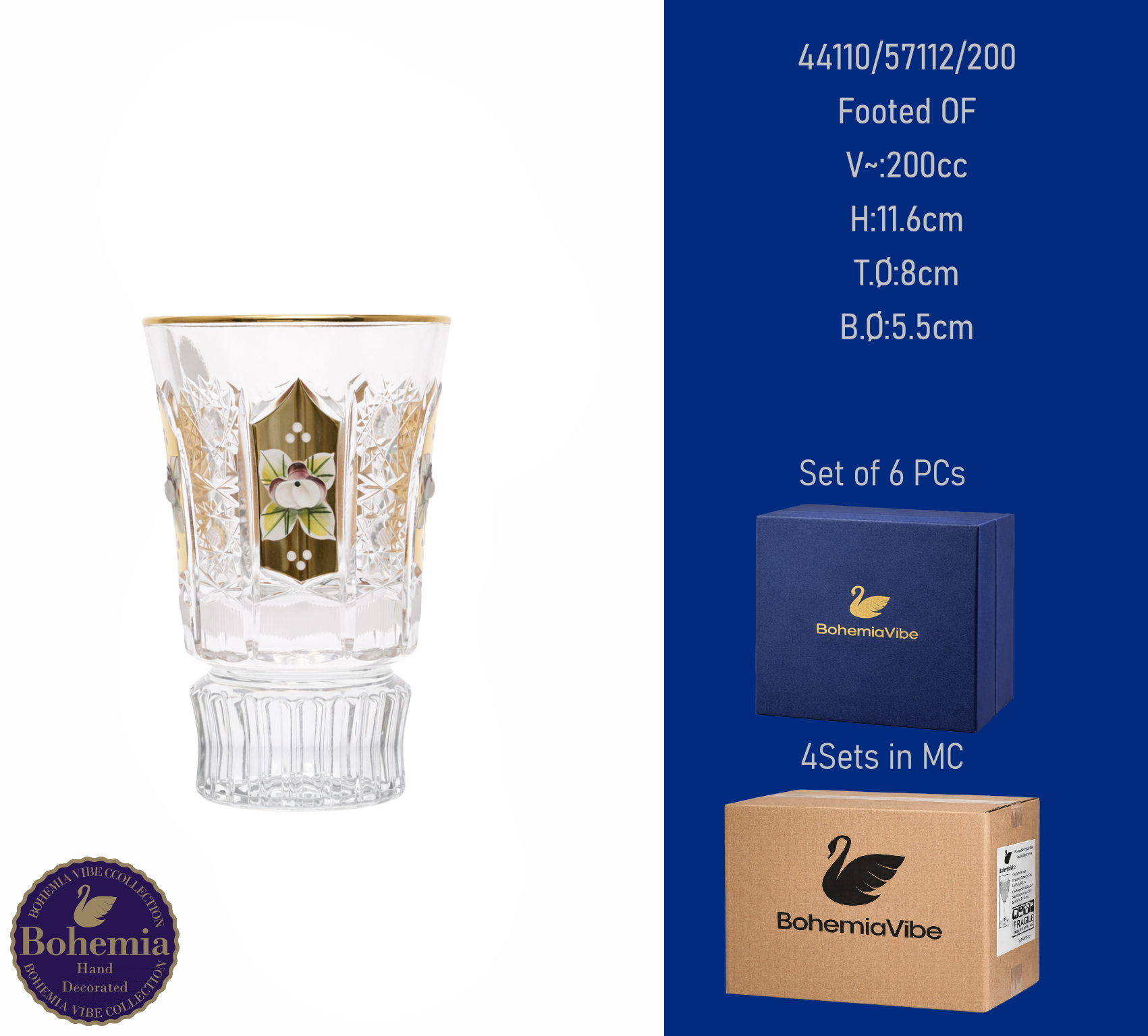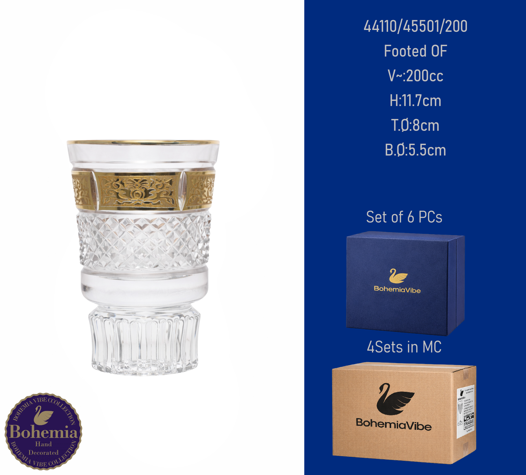 Footed OF V~:200cc H:11.7cm T.Ø:8cm B.Ø:6.5cm Cutting with gold sandblasting