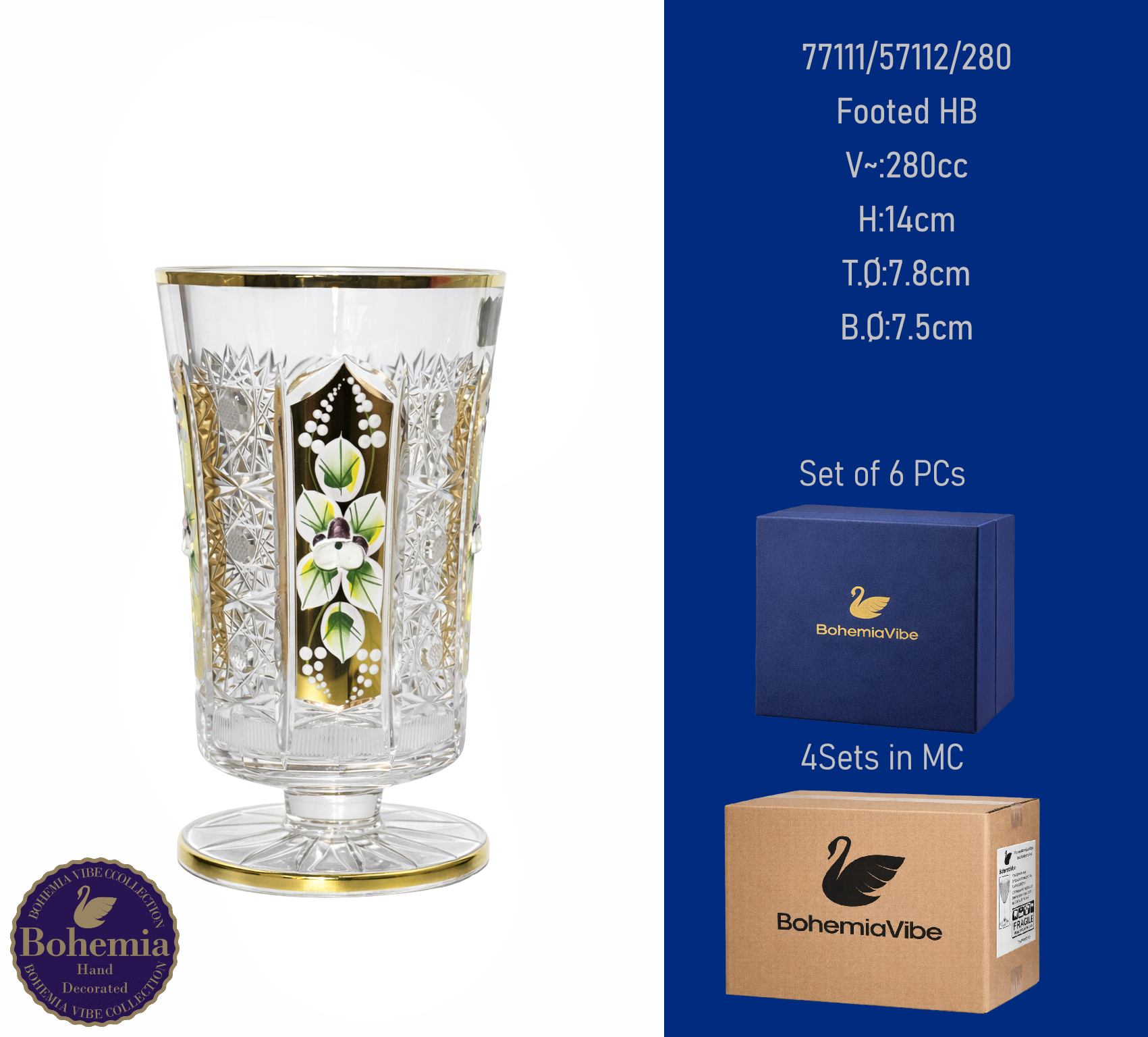 Footed HB V~:280cc H:14cm T.Ø:7.8cm B.Ø:7.5cm PK500 cut with gold and enamel painting vertical