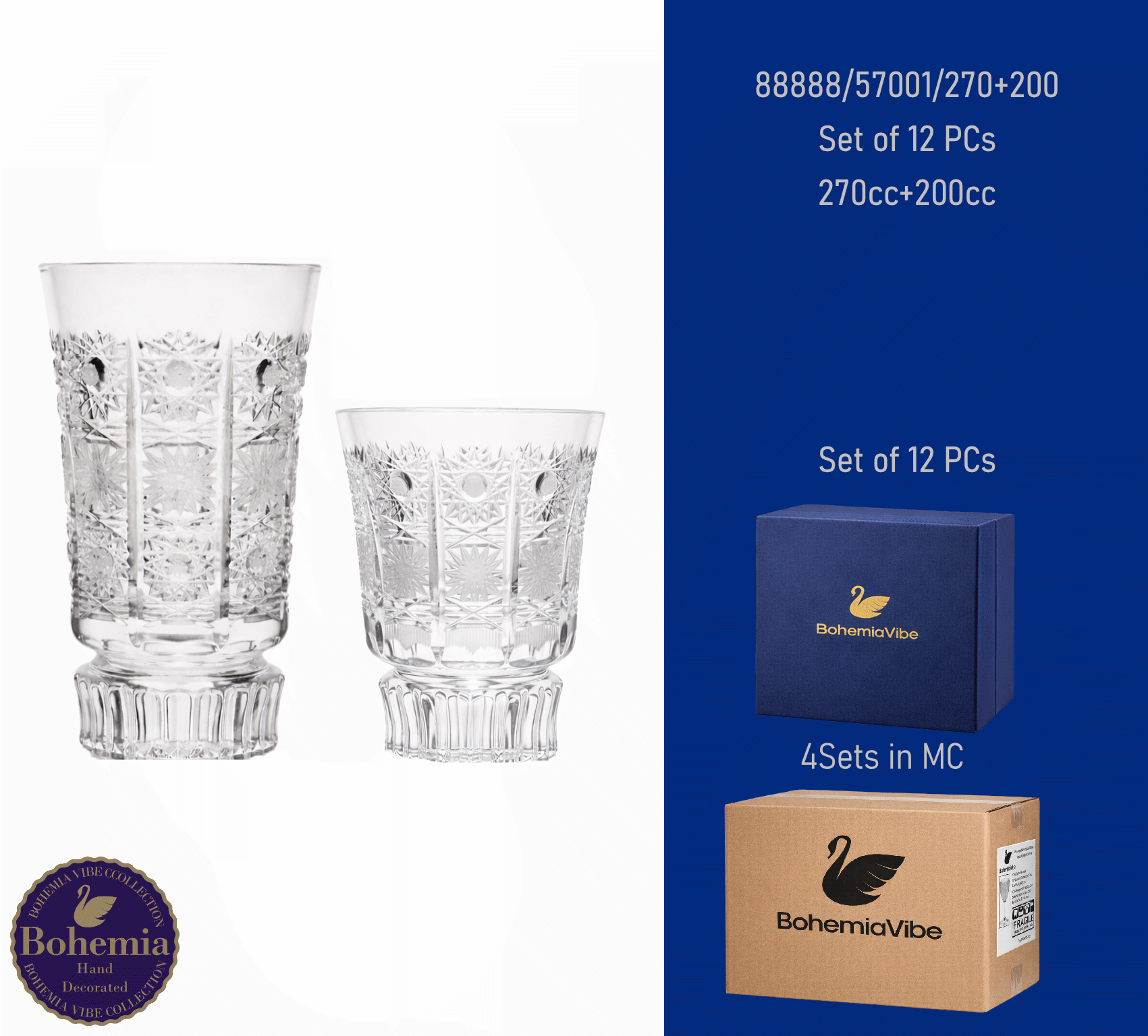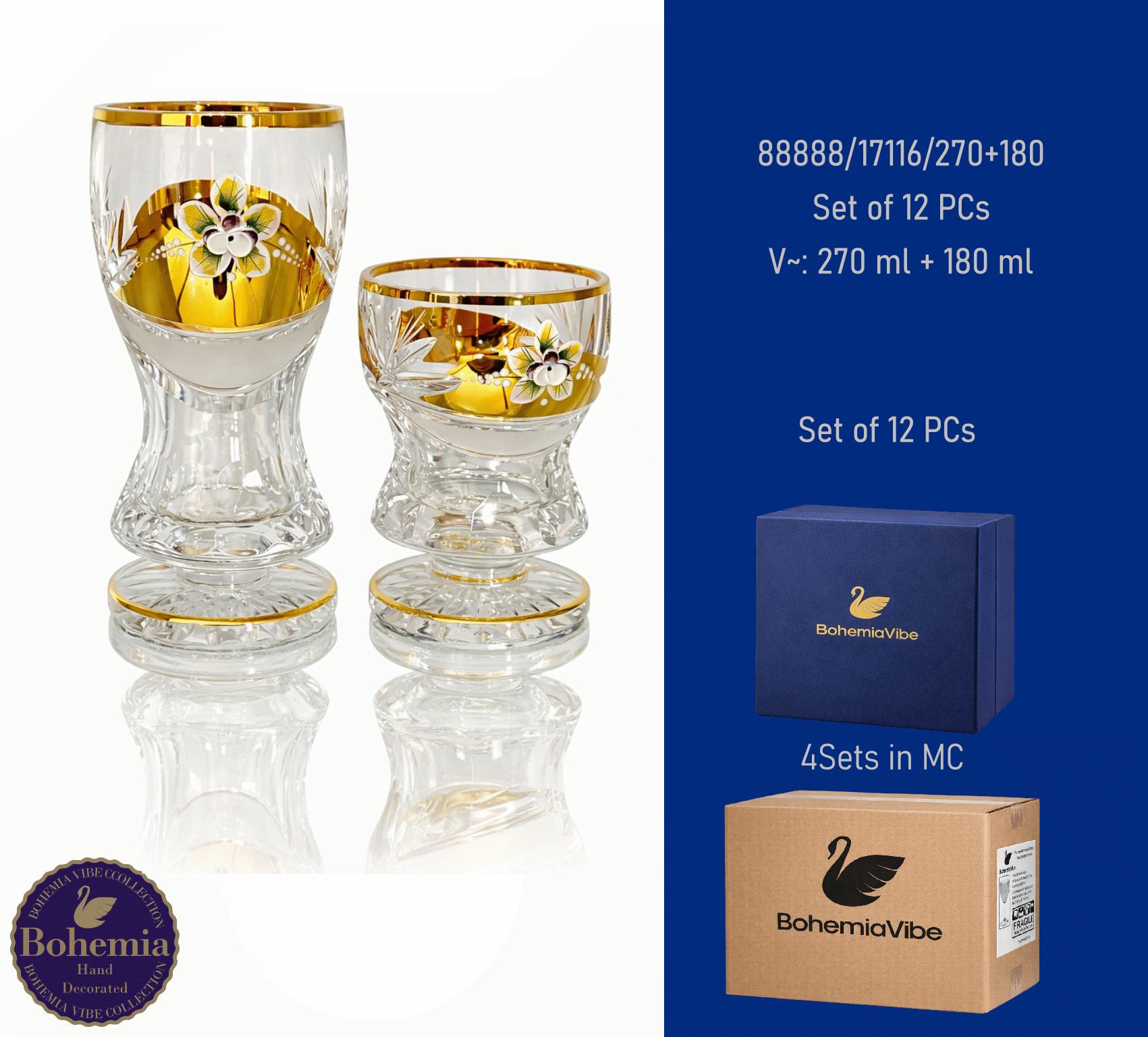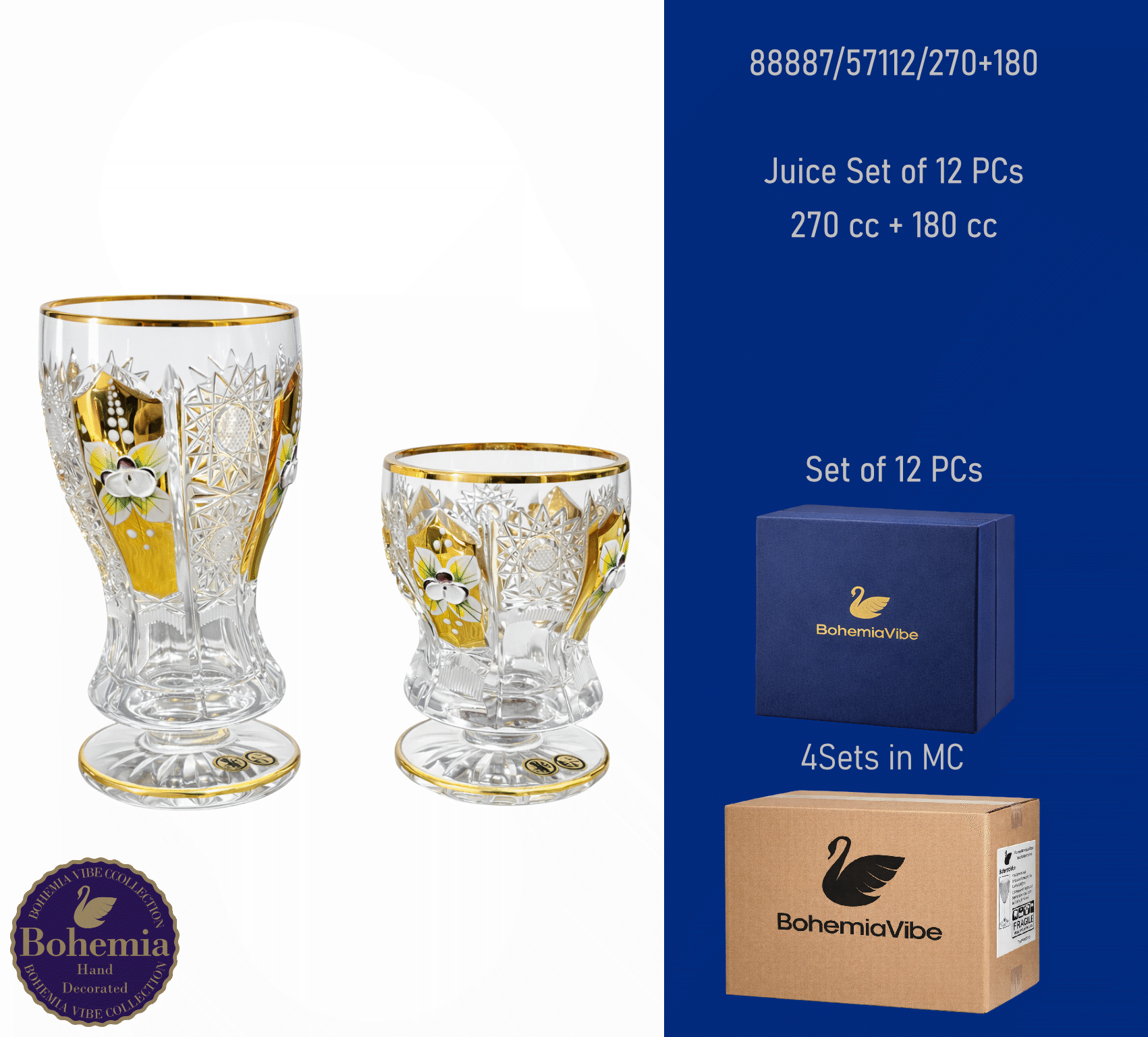 Juice Set of 12 PCs270 cc + 180 cc PK500 cut with gold and enamel painting vertical