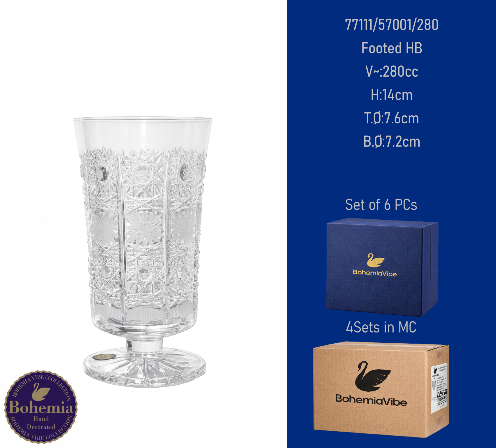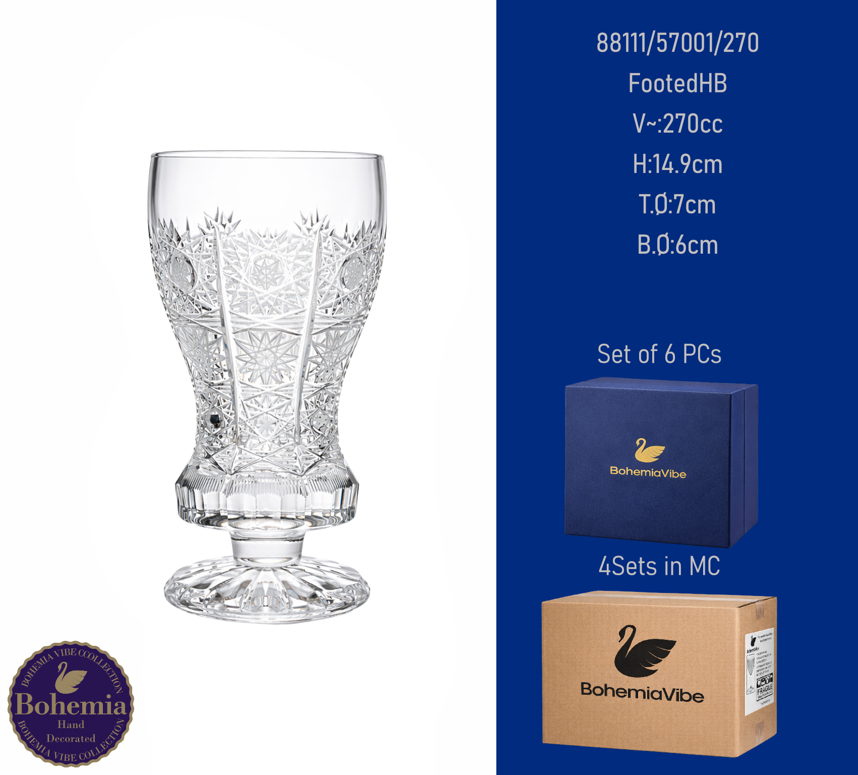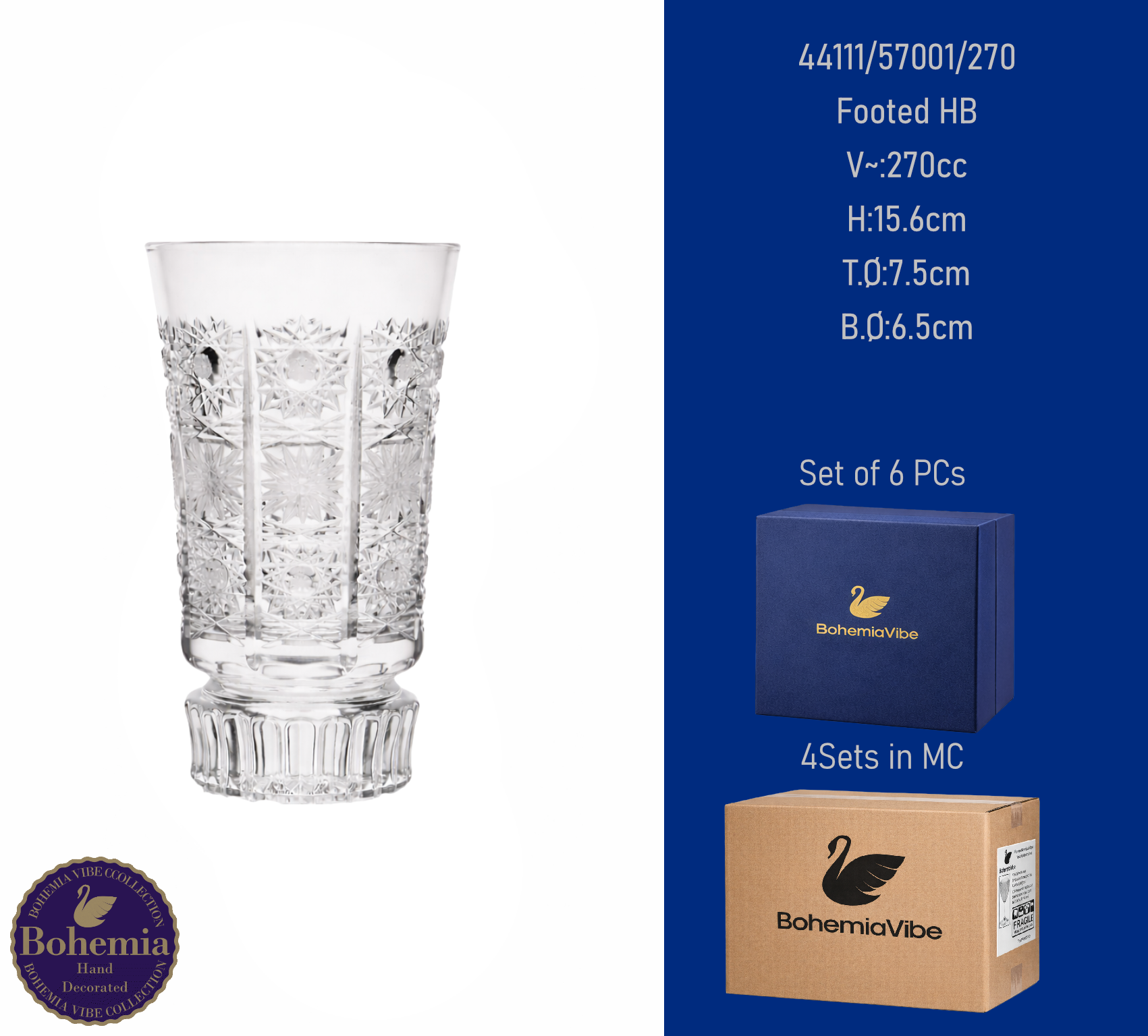 Footed HB V~:270cc H:15.6cm T.Ø:7.5cm B.Ø:6.5cm PK500 cut