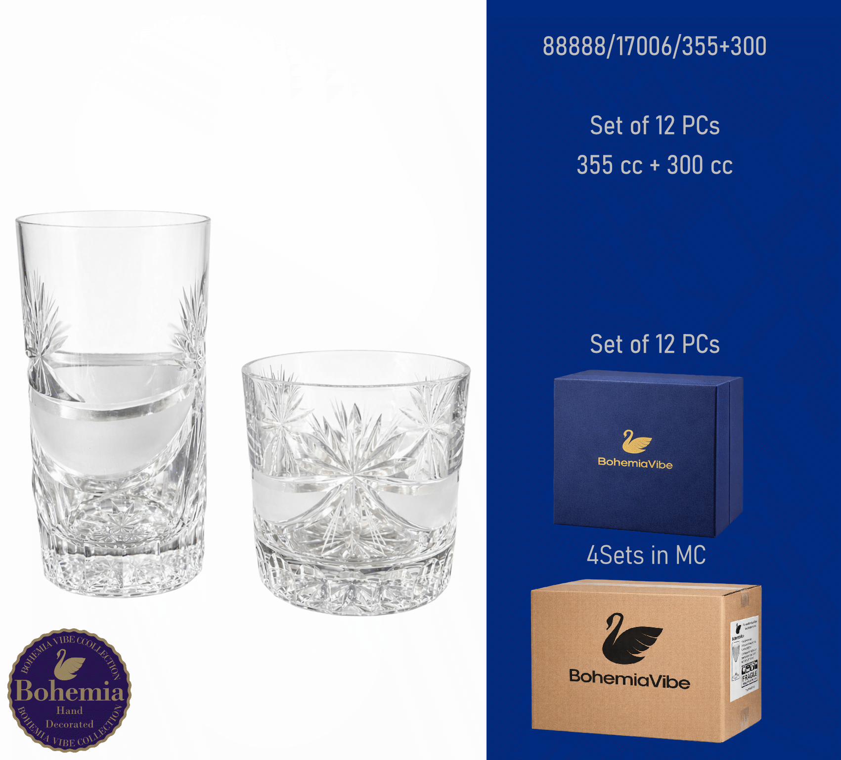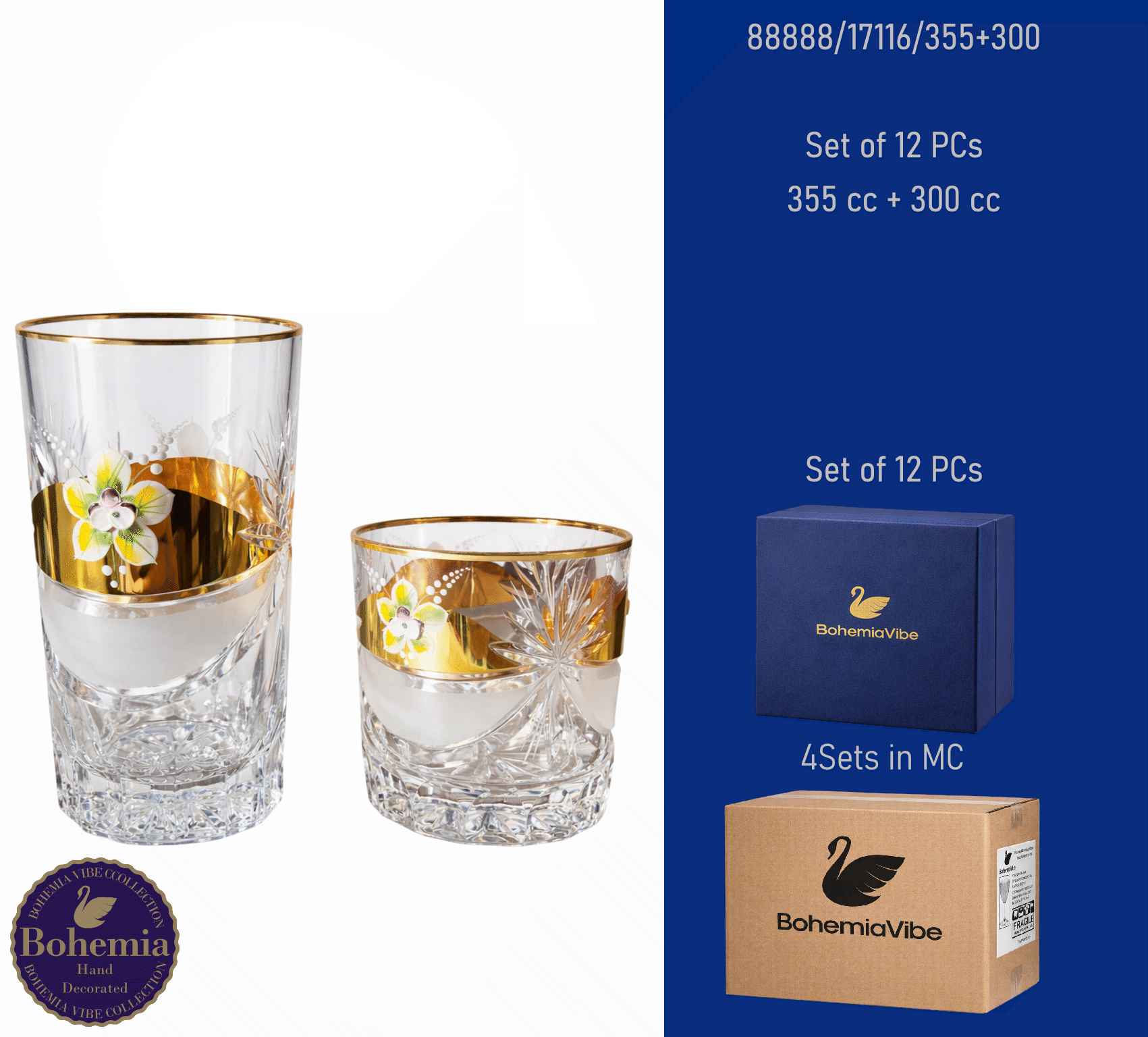 Juice Set of 12 PCs355 cc + 300 cc Bows with gold and enamel