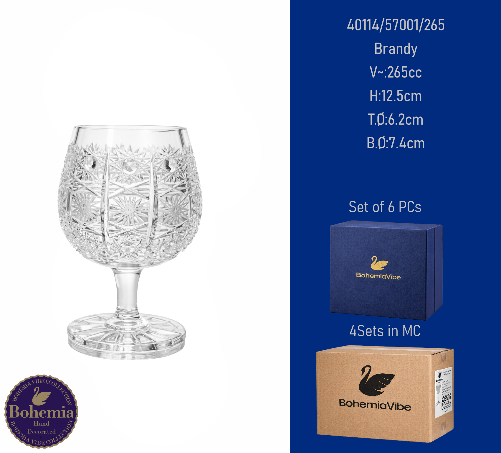 Brandy V~:265cc H:12.5cm T.Ø:6.2cm B.Ø:7.4cm PK500 cut