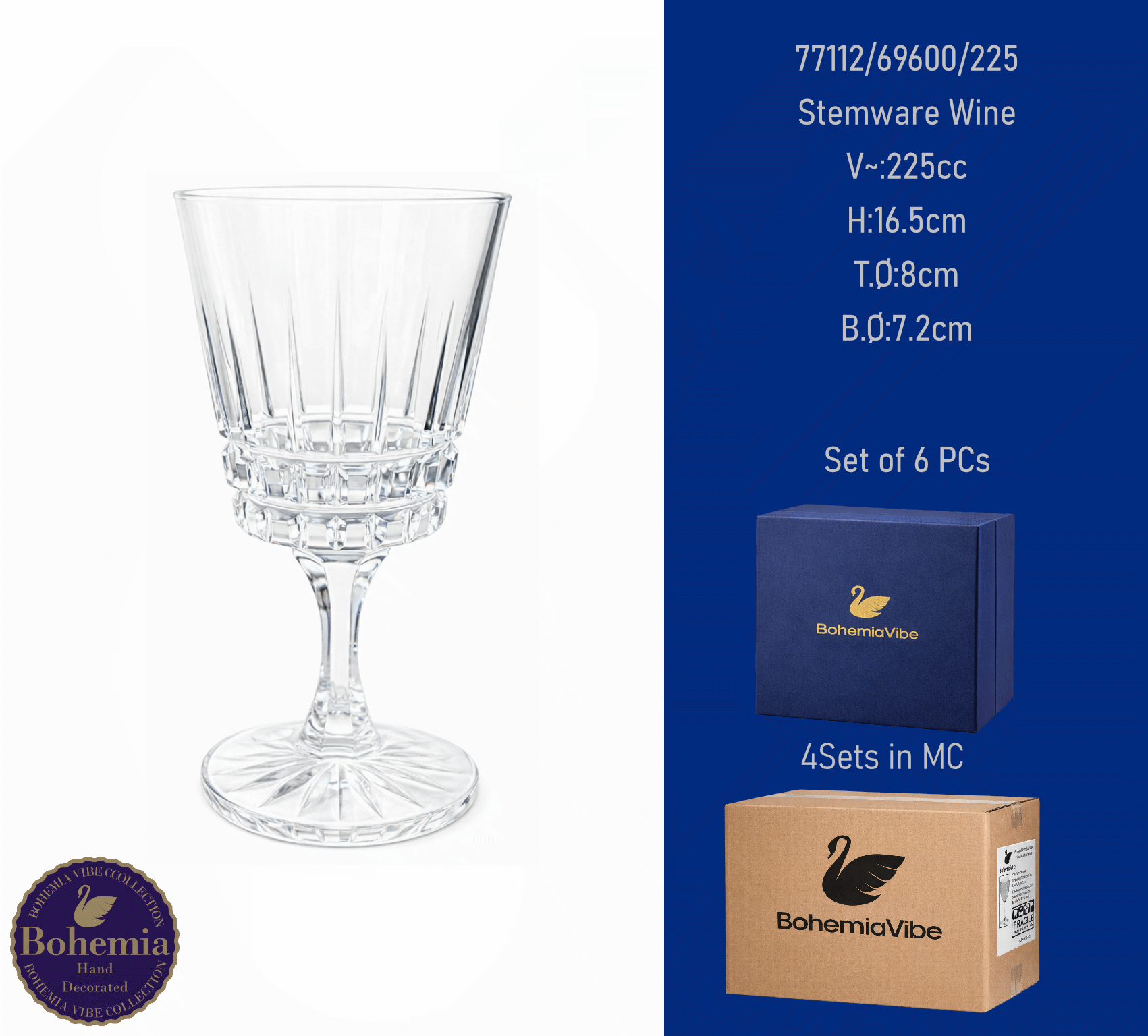 Stemware Wine V~:225cc H:16.5cm T.Ø:8cm B.Ø:7.2cm Modern cutting