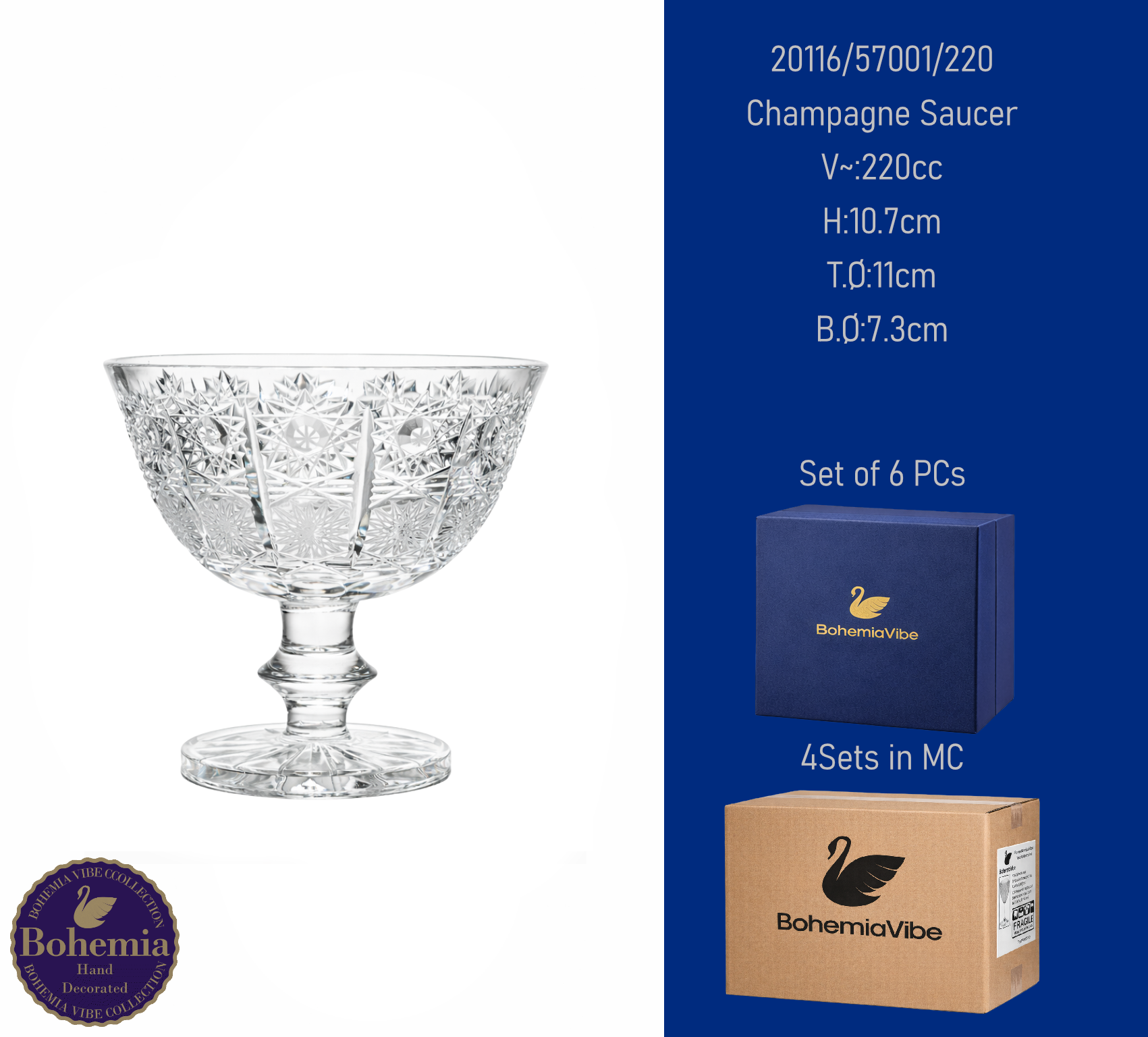 Champagne Saucer V~:220cc H:10.7cm T.Ø:11cm B.Ø:7.3cm PK500 cut