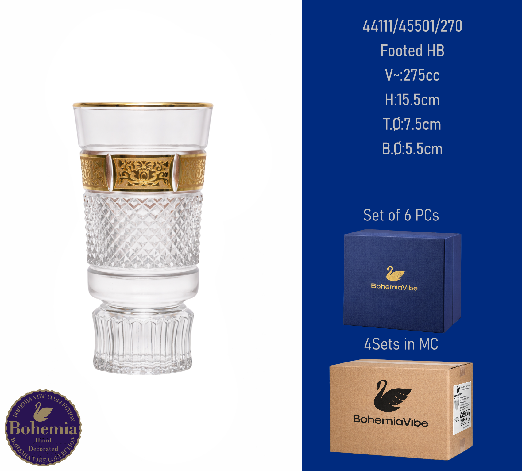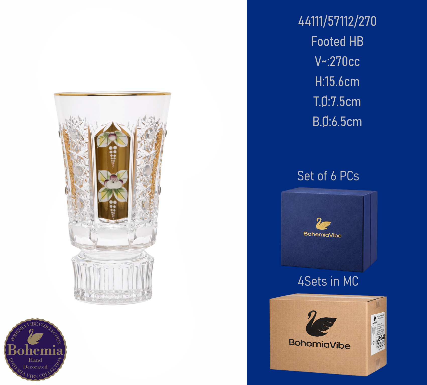 Footed HB V~:270cc H:15.6cm T.Ø:7.5cm B.Ø:6.5cm Cutting with gold sandblasting