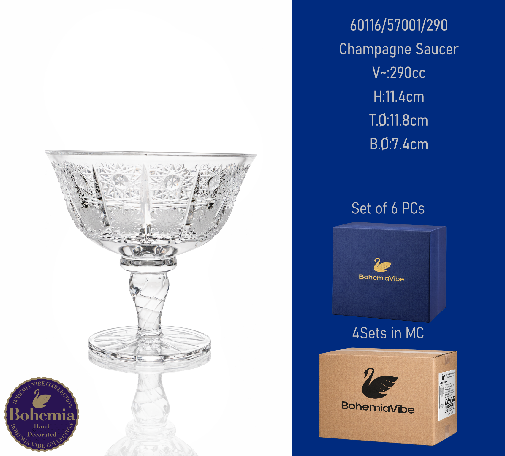 Champagne Saucer V~:290cc H:11.4cm T.Ø:11.8cm B.Ø:7.4cm PK500 cut