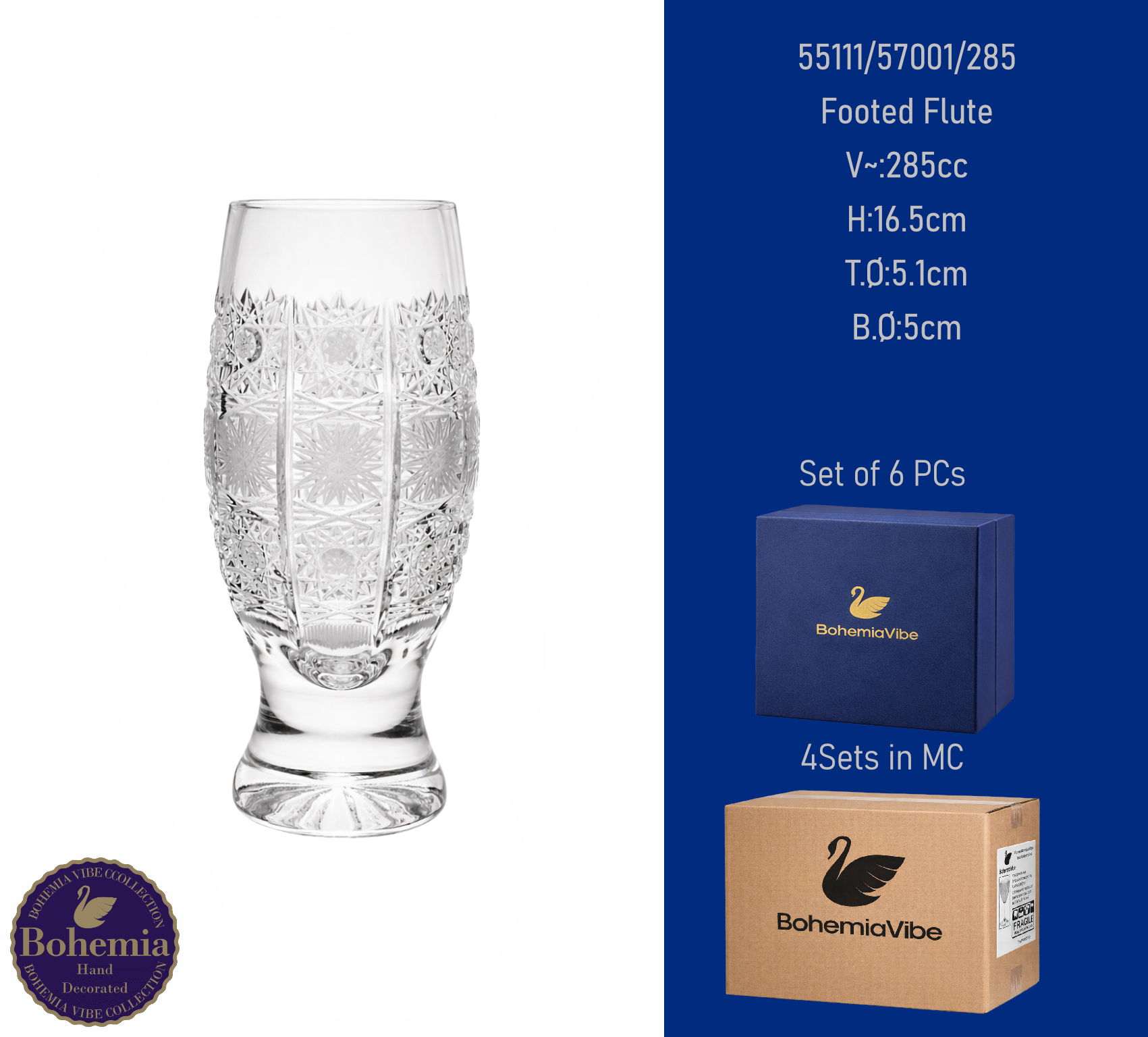 Footed Flute V~:285cc H:16.5cm T.Ø:5.1cm B.Ø:5cm PK500 cut with gold sandblasting