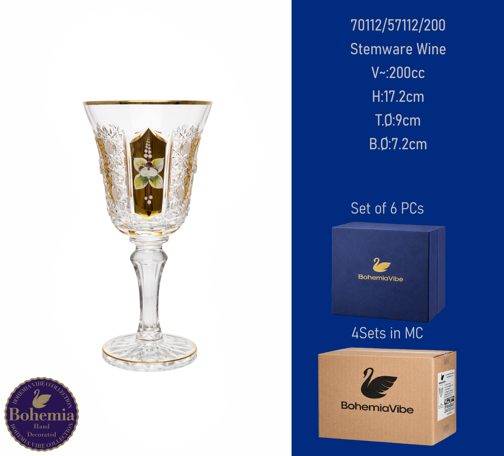 Stemware Wine V~:200cc H:17.2cm T.Ø:9cm B.Ø:7.2cm PK500 cut with gold and enamel painting vertical