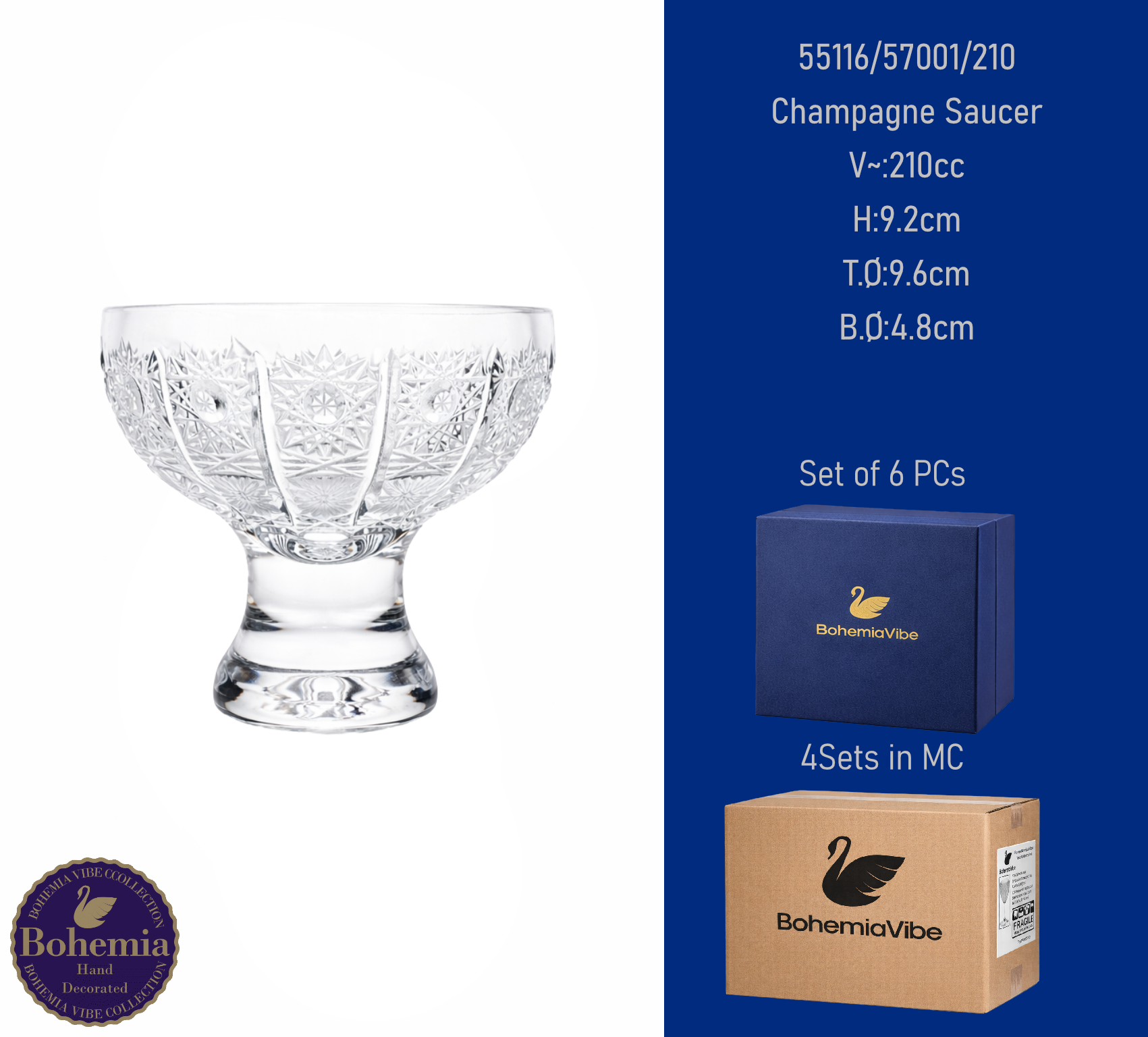 Champagne Saucer V~:210cc H:9.2cm T.Ø:9.5cm B.Ø:5cm PK500 cut