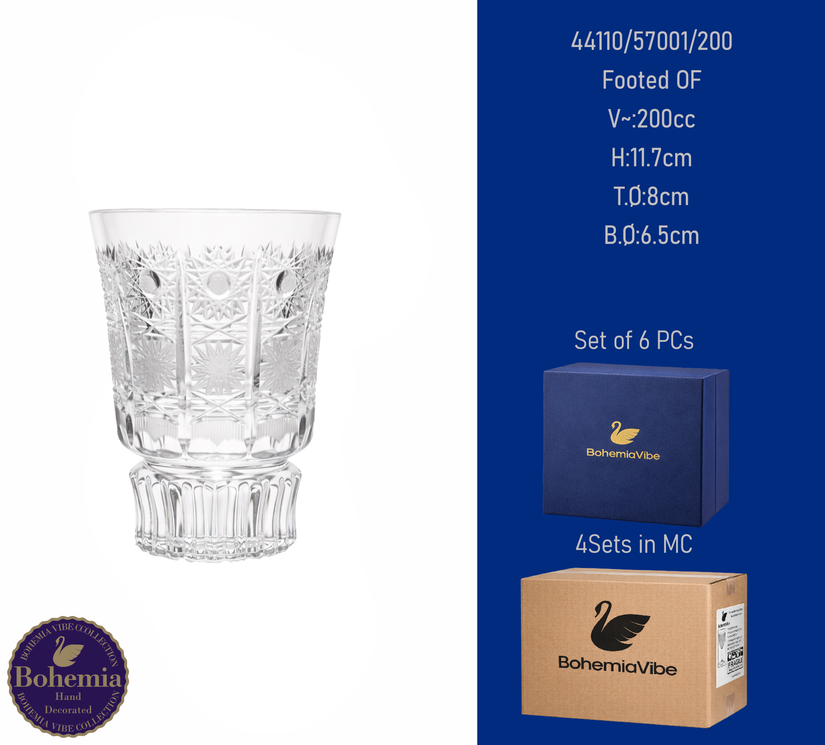 Footed OF V~:200cc H:11.7cm T.Ø:8cm B.Ø:6.5cm PK500 cut